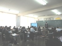 1年授業風景、道徳の授業です。2学期は、学年所属の先生がローテーションを組み、いろいろなクラスで道徳の授業をしています。担任ではない先生による授業です。どのクラスでも、他の人の意見にじっくりと耳を傾け...