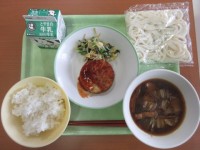 今日の献立のテーマは「社会」歴史上の人物、豊臣秀吉にちなんだメニューです。ごはん、牛乳みそ煮込みうどん、すり身のお好みソースかけ、ゆば和え です。秀吉の出身地は愛知県。その郷土料理、「赤みそ」を使った...