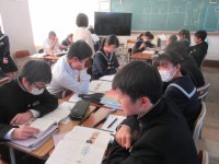 1年授業風景です。1組は国語。作品を読んで、不便であることで何かいいことがあるか、グループごとに考えています。2組は理科。地震のメカニズムについて学習しています。3組は社会。今まで習った歴史の用語につ...