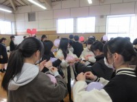 6年生が参加した模擬授業(音英国)風景です。音楽では、中学生と一緒に「翼をください」の合唱に挑戦しました。英語では、発音練習やカード取り、英会話で中学生と楽しみました。国語では、中学生と共に百人一首を...
