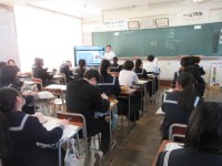 1年授業風景です。1組は理科。地震発生のメカニズムについて学習しています。2組は社会。室町時代の勘合貿易について大事な語句を先生と確認しています。3組は数学。立体の表面積の求め方を、実際に問題を解きな...