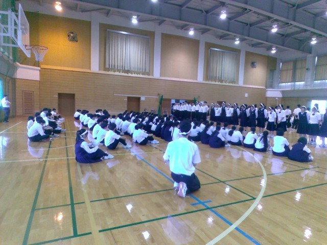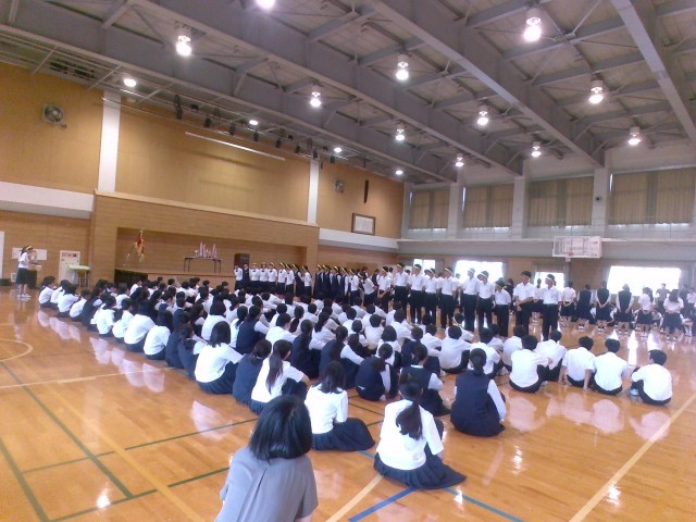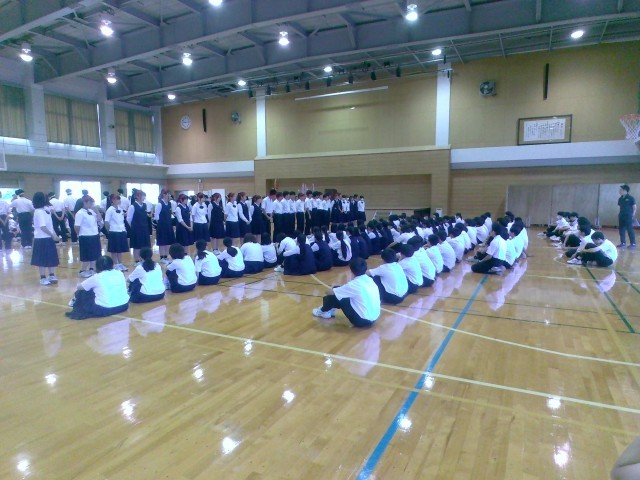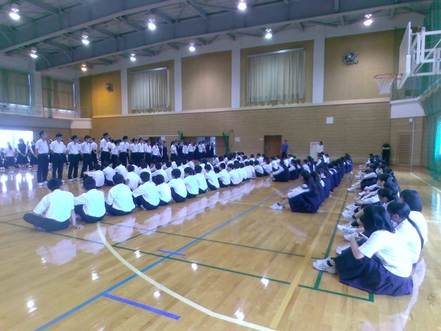 スローガン発表の後、各団結束式を行いました。団ごとに練習した「かけ声」を披露し合う「かけ声合戦」は、ほんの1分程度の練習時間とは思えない出来栄えで、リーダーの指示と団員の協力が素晴らしかったことを物語っていました。