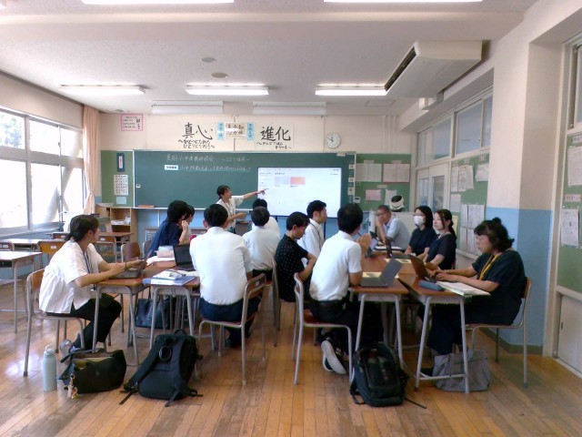 7月29日(火)新庄中学校区 夏期小中連携研修会 公開日 2025/07/30 更新日 2025/07/29 その他 9:30から、新庄中学校区夏期小中連携研修会を行いました。今回は「小中9年間を見通した系統的な学力向上を目指して」というテーマで、7つのグループに分かれて各校の実態や具体的な取組、課題等について情報交換しました。どのグループも積極的に話し合い、小中学校9年間で育てたい力について共通理解を図りました。 +4