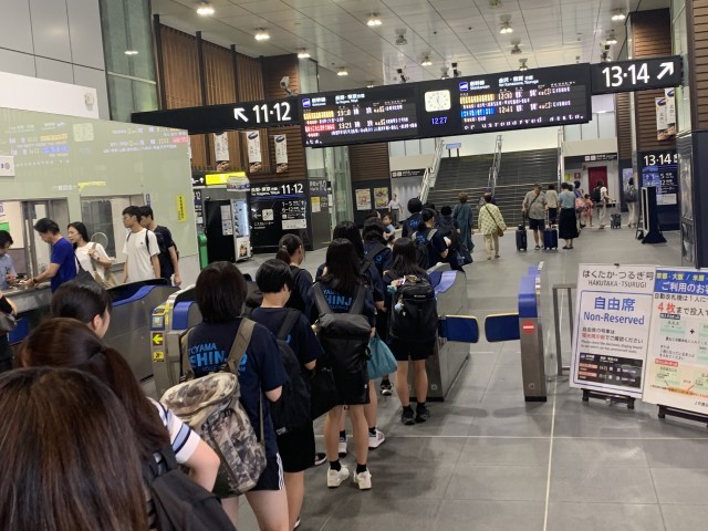 バレーボール部が全日本中学校バレーボール選手権大会に向けて、出発しました。