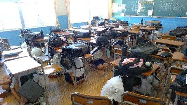 9月1日(月)シェイクアウト訓練 公開日 2025/09/01 更新日 2025/09/01 その他 終学活時にシェイクアウト訓練を行いました。非常時に自分の体を守る行動を無意識にとれるようになるために、とても大事な訓練です。生徒たちは放送の合図で一斉に机の下に頭を入れ、机の対角線を手でしっかりと握っていました。 +1