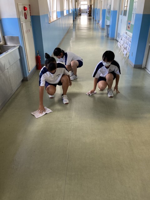 9月3日(水)ステキな行動 公開日 2025/09/03 更新日 2025/09/03 3学年 給食当番が教室に給食を持って行くときに、歩く振動で食缶の汁が廊下に溢れる事がたまにあります。いつもなら教員が拭いているのですが、この日は溢れている事に気付いた生徒が自ら雑巾で拭き取ってくれました。通りかかった生徒も加わって丁寧に拭いてくれました。気付き考え行動できるってステキですねぇ 1年生 2年生 3年生 学校行事 授業参観 PTA