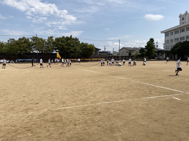 9月10日(水)3学年種目練習 公開日 2025/09/10 更新日 2025/09/10 3学年 昨日、今日と外で学年種目である綱引きの練習をしました。リーダーが率先して準備や片付け、団員への指示などを行ってくれたおかげでスムーズに進行できました。さすが3年生です。団活動も3年生が中心となって団員たちを盛り上げてくれています。明日は予行練習の予定です。この調子で3年生がひとつになり、気合いを入れて頑張っていきましょう! +7 1年生 2年生 3年生 学校行事 授業参観 PTA