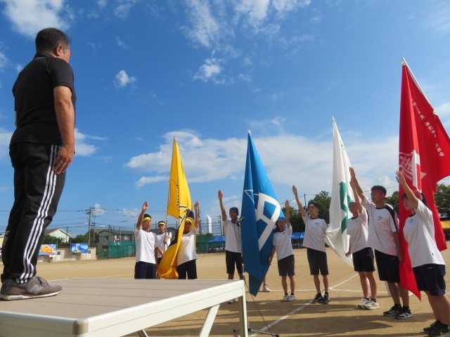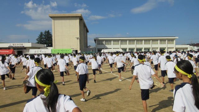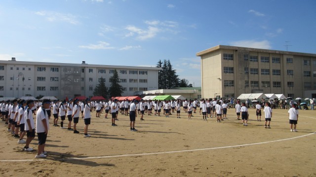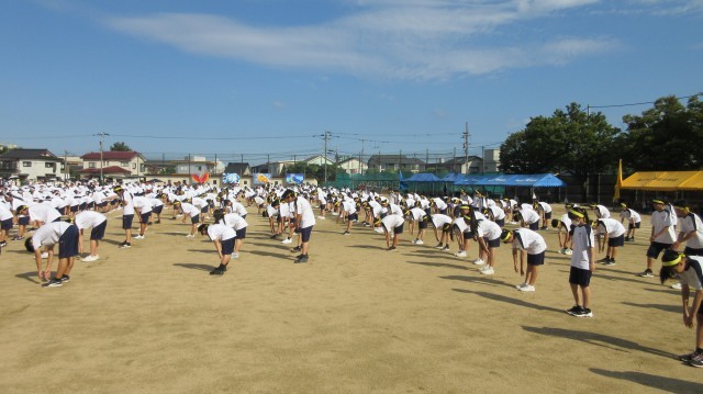 9月17日(水) 第79回体育大会 開会式 ストレッチ体操 公開日 2025/09/17 更新日 2025/09/17 学校行事 体育大会開会式、ストレッチ体操の様子です。各団の団長たちの立派な宣誓が行われました。団を先導していく者としての素晴らしい姿に生徒も教員も気合が入りました。その後のストレッチ体操ではかけ声を出しながら、十分に体をほぐすことができました。 +1 1年生 2年生 3年生 学校行事