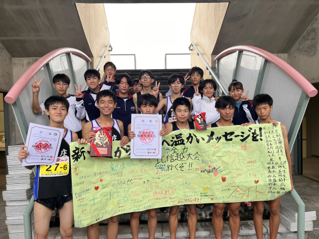 男子チームが出場し、4位入賞を果たしました。最後まで順位を下げることなく、チームとしての総合力を発揮した入賞でした。目標であった北信越大会の出場権獲得まではあと一歩でしたが、大変素晴らしいレースでした。