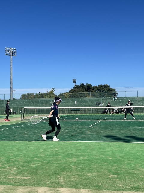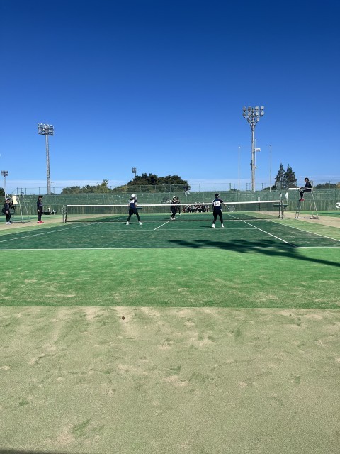 ソフトテニス競技は、岩瀬スポーツ公園にて、熱戦が展開されています。快晴の空のもと、生徒は持てる力を出し切りましたが、無念の惜敗。