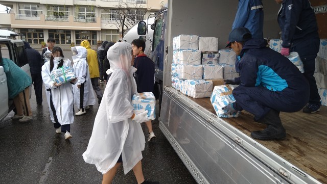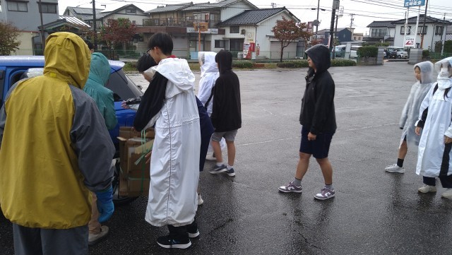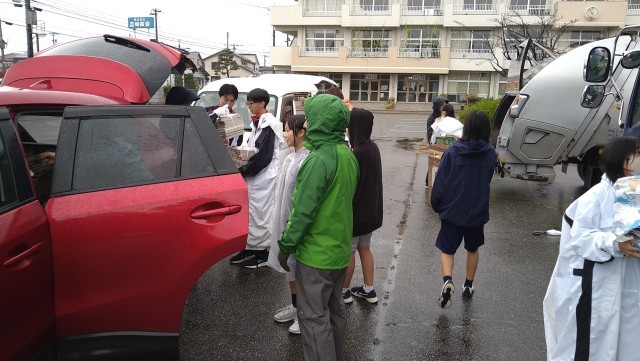 また、小雨が降る中でしたが、多くの生徒が参加し、資源の積み下ろしを行っていました。