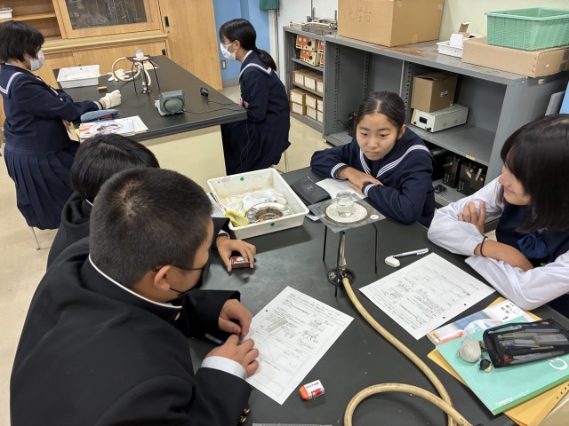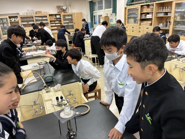 10月31日(金)1年生 理科実験 公開日 2025/11/01 更新日 2025/10/31 1学年 理科の実験も非常に慣れ、自分達で実験ができるようになりました。ガスバーナーは、とてもスムーズに使えるようになっていて、成長を感じました。みんな生き生きと実験に取り組んでいます! 1年生 2年生 3年生 学校行事 授業参観 PTA