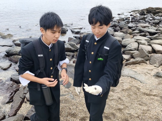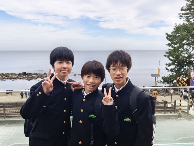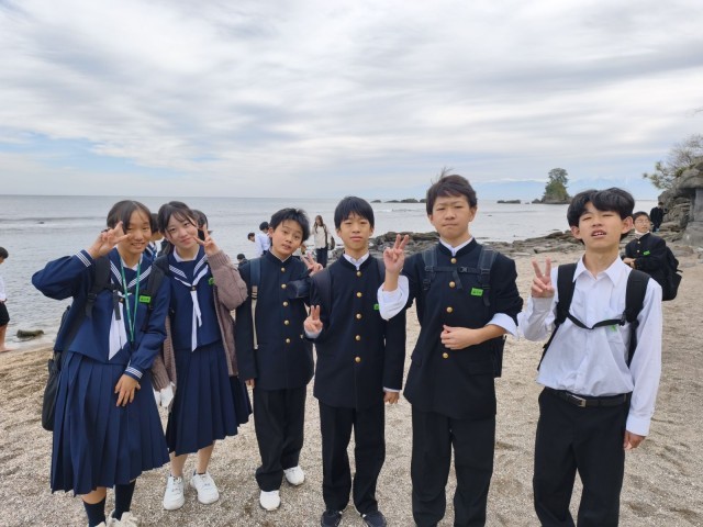 雨晴海岸までJR氷見線で足を運んだ班もありました。天気にも恵まれ、きれいな海を見ることができました。みんな笑顔です。