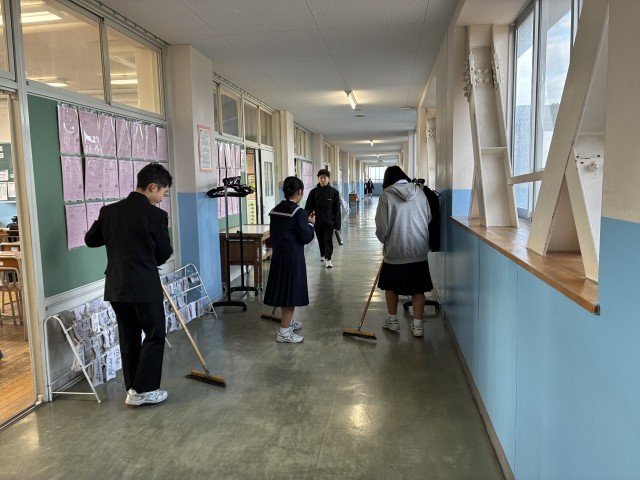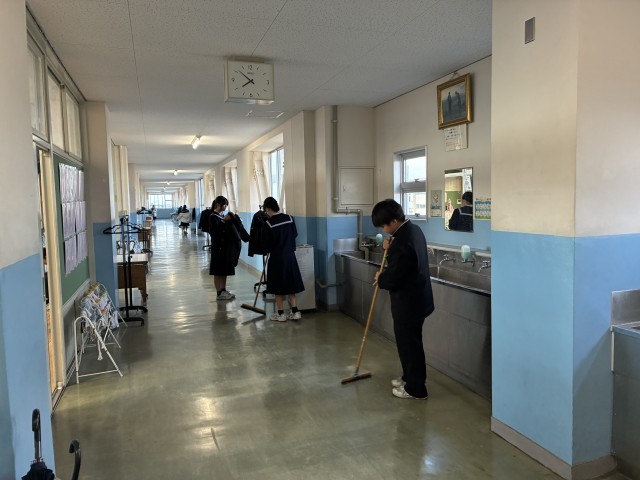 1年生では、学年生徒会のメンバーから声があがり、毎週水曜日にボランティアで朝清掃を行っています。学年生徒会のメンバーだけでなく、朝早く登校した生徒もたくさん参加してくれています。