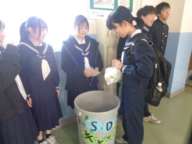 中には2袋分のキャップを持ってきてくれた生徒もいました。