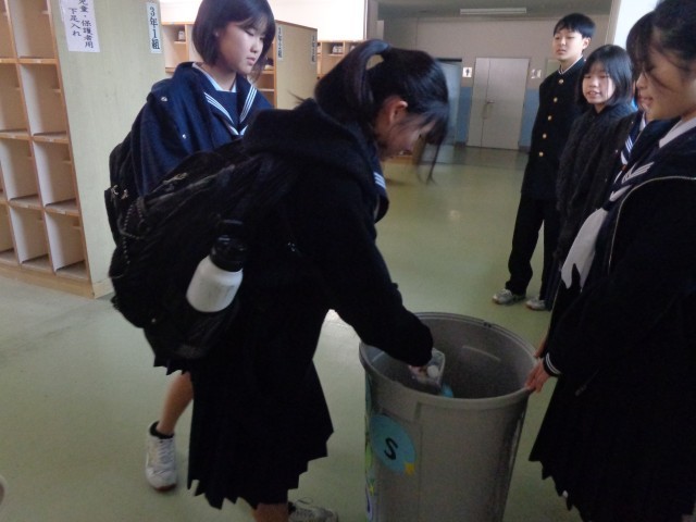 生徒玄関では「あ、忘れてしまった」という声も聞こえてきました。