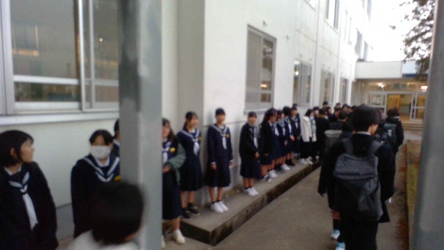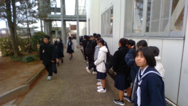 師走の朝の寒空の下、生活委員会が計画した挨拶運動を行いました。