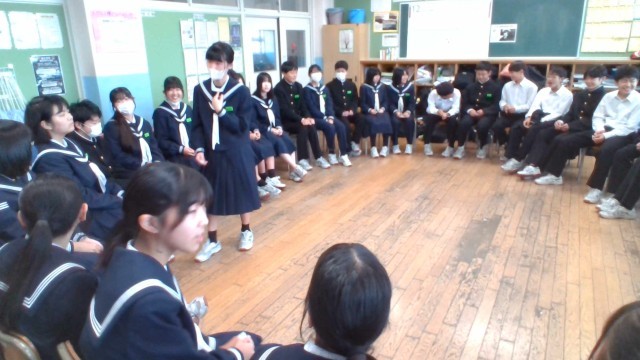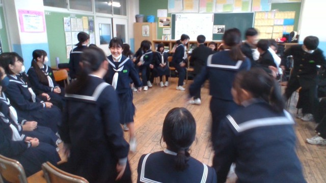 12月22日(月) 1学年 英語 公開日 2025/12/22 更新日 2025/12/22 1学年 今日はALTの先生との最後の授業でした。フルーツバスケットを英語で行い、ALTにメッセージを言ったり英語で質問をしたりして、これまでの学習内容を振り返りました。 1年生 2年生 3年生 学校行事 授業参観 PTA