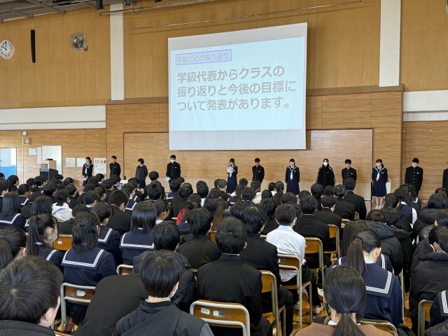 各クラスの学級代表からクラスの様子を振り返り、よかった点や改善点などの発表がありました。
