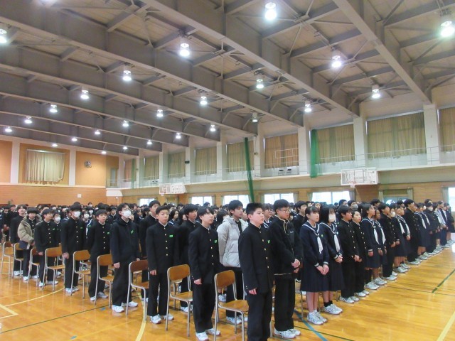 12月24日(水)終業式 公開日 2025/12/24 更新日 2025/12/24 学校行事 終業式では、式辞で「変わろうとした瞬間から人は変わり始める」という言葉を引用し、「3学期、必ず変われます!」という力強い激励の言葉が伝えられました。生徒たちは全ての話を真剣に聴き、校歌斉唱では大きな声で歌うなど、2学期の締めくくりにふさわしい態度で臨んでいました。 +1 1年生 2年生 3年生 学校行事 授業参観 PTA