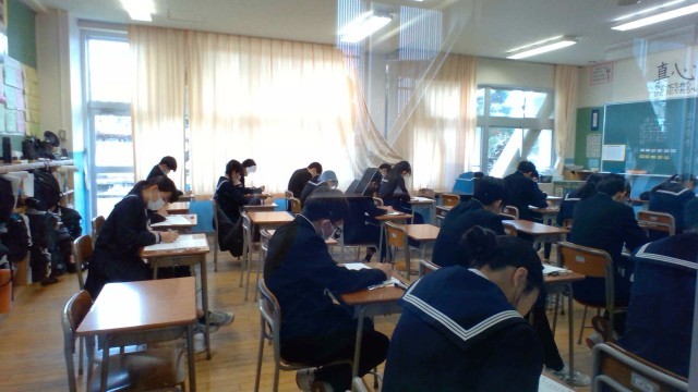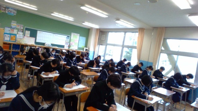 1月9日(金)3年生実力テスト 公開日 2026/01/10 更新日 2026/01/09 3学年 3年生は実力テストを実施しました。来月の私立一般入試と同じように一日で5教科行うので、普段のテストより集中力を持続させる必要があります。冬休み中に努力した成果が発揮できるよう、頑張りましょう! 1年生 2年生 3年生 学校行事 授業参観 PTA