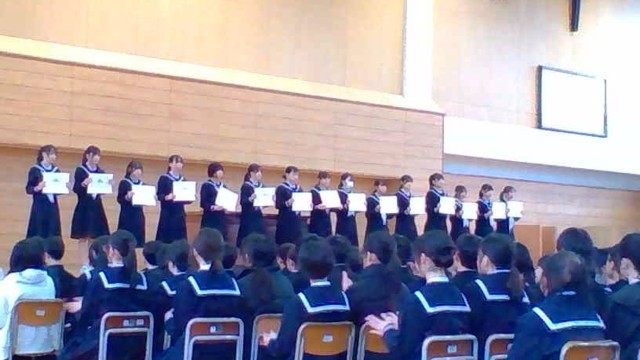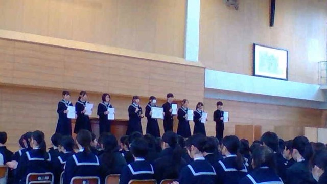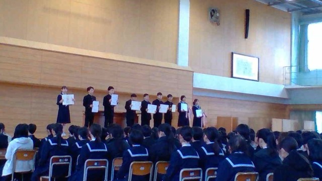 5限後に、受賞報告を行いました。3学期も、運動・文化の両面で多くの活躍がありました。