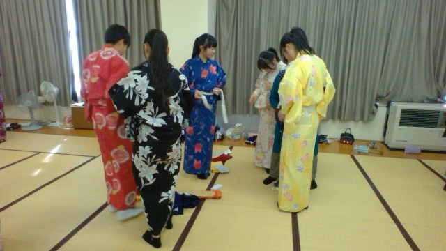 2年生は着付け教室も開催しました。普段は着る機会があまりない浴衣の着付けを教えていただき、貴重な体験ができました。講師の方々に教えていただくだけではなく、友人同士で教え合う姿も見られ、浴衣姿の素敵な光景とともに成長した姿を感じることができました。