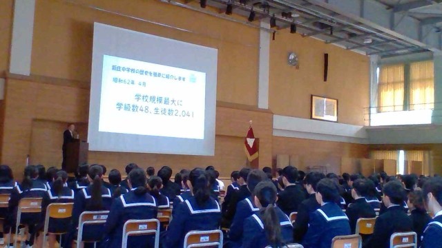 5時間目に創立記念式を行いました。