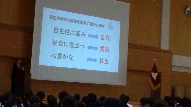 最初に入場した3年生が「式」に臨むときのあるべき姿勢を見せてくれたおかげで、2年生、1年生も整然と入場することができました。式辞で示した「自立」を行動で表すことができた新中生、素晴らしいです!