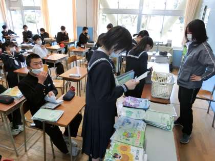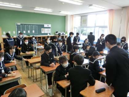 3年 学級開き1 公開日 2021/04/07 更新日 2021/04/07 3学年 4月7日(水)1限 新しいクラスの始まりです。3年生は、各教室で課題を集めたり、机や椅子に名前シールを貼ったりしています。 上:3−1 中:3−2 下:3−3