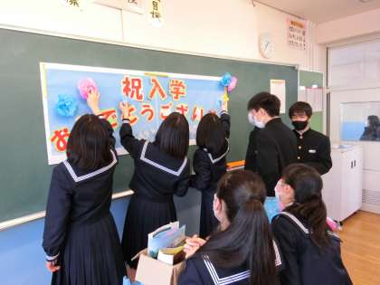 1年生の教室では、飾り付けをしたり、配布物を確認したりしました。