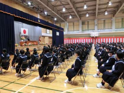 姿勢よく、顔を上げて式辞や祝辞を聞いている新入生の姿からは、これからの学校生活の充実が予見できます。