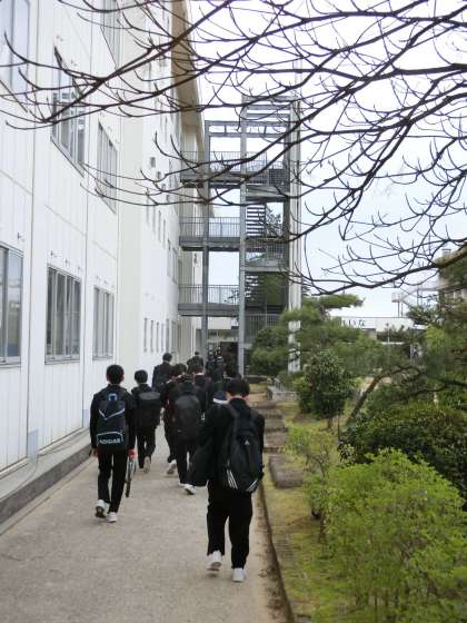 朝の登校風景 公開日 2021/04/13 更新日 2021/04/13 そ の 他 4月13日(火)8:00 とても風の強い朝です。風を直接受ける正面玄関前を生徒が通るときに、砂が舞い上がって辛そうですが、みんな元気に登校しています。