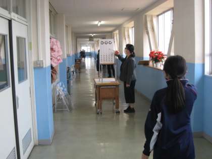 1年生も2時間目に身体計測、3時間目に視力検査を行いました。