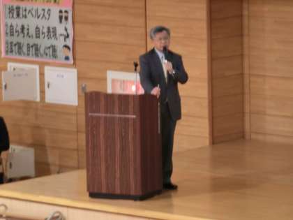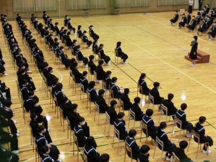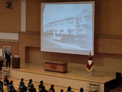 入学して初めて、1年生が2、3年生と対面しました。3年生代表生徒から1年生に歓迎の言葉が伝えられ、顔を上げて聞き取ろうとしている1年生の姿がとても立派でした。また、創立記念式の式辞で新庄中学校の歴史について、時代を表す貴重な写真が紹介されました。特別講演では、演題「とやまの水」と題して、講師から話を聞き、常願寺川を水源とする水の恩恵について理解を深めた時間となりました。