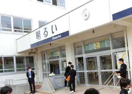 朝の登校風景1 公開日 2021/04/24 更新日 2021/04/24 そ の 他 4月23日(土)7:55 今日は土曜日ですが、授業参観が行われるため、生徒ははりきって元気に登校しています。生徒玄関入口の準備を、3年生が積極的に行っています。