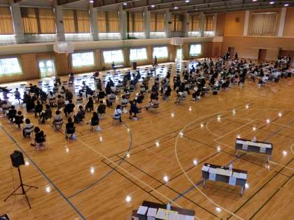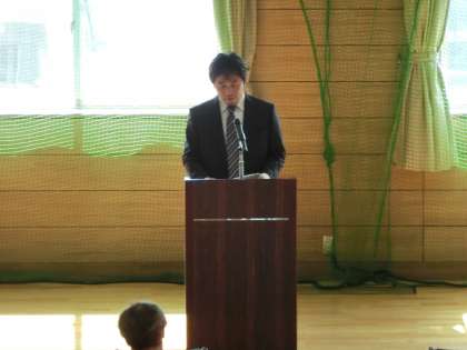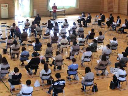 PTA総会1 公開日 2021/04/24 更新日 2021/04/24 そ の 他 4月24日(土)14:40 授業参観後、体育館で前後左右の間隔を十分取った状態でPTA総会を行いました。PTA会長の挨拶の後、昨年の活動報告と会計監査、今年度の活動予定と予算案を審議しました。
