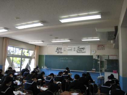 4月27日(火)1限 上:3−1 学活 中:3−2 数学 下:3−3 英語