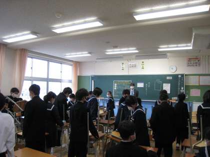 4月28日(水)1限 上:1−1 家庭科 中:1−2 数学 下:1−3 学活