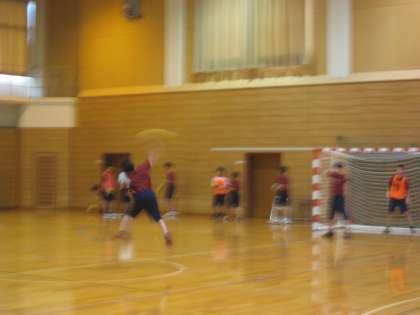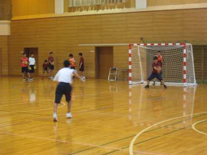 2・3年生は紅白戦、1年生はミニゲームを行いました。ルールがまだ分からず困っている1年生に対し、2年生がルールを分かりやすく教えていました。明日も行うミニゲームがより充実するよう指導していました。