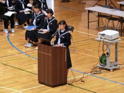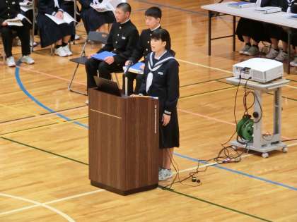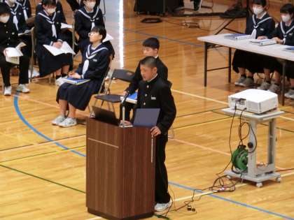 上:美化委員長からの説明 中:生活委員長からの説明 下:図書委員長からの説明