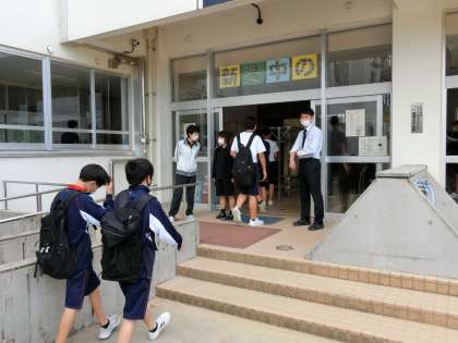 少し曇って日差しが和らぐ、過ごしやすい朝になりました。今日から体育大会の団演技練習を全校生徒で行うため、朝から体育服で登校してもよいことになっています。