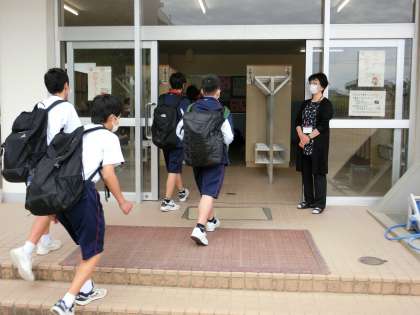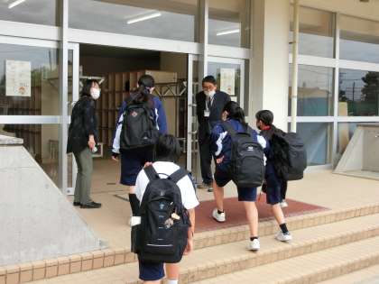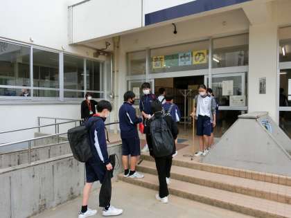 朝の登校風景 公開日 2021/05/14 更新日 2021/05/14 そ の 他 5月14日(金)8:00 今日もさわやかな青空の広がる朝になりました。少し暑く感じられるのですが、体育服の生徒は涼しげに登校しています。 生徒玄関では、美化委員会が朝清掃に取り組んでいました。
