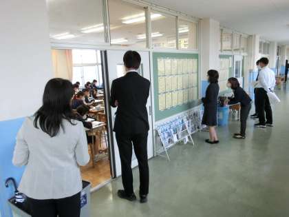 新庄中学校区にある4つの小学校の先生方が来校され、1年生の授業の様子を参観していただきました。生徒たちはいつも以上に張り切って授業に臨んでいました。