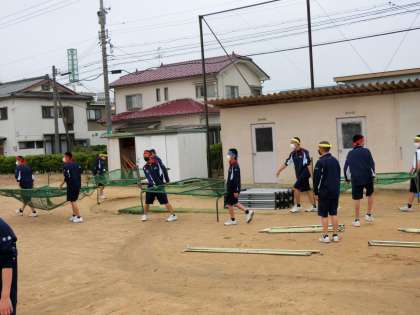 体育大会予行2 公開日 2021/05/19 更新日 2021/05/19 学校行事 天候を見ながら、2限目から予行の準備を始めました。1時間待ったおかげでグラウンドコンディションはかなりよくなりました。