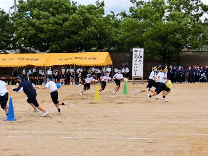 プログラム6は、1年生男子による「心を燃やせ新庄廻戦−むげん列車編−」です。結果は、1位白虎団、2位赤豹団でした。