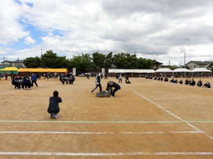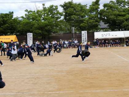 プログラム7は、2年生女子による「タイヤしか勝たん!」です。 結果は、1位黄熊団、2位青龍団でした。