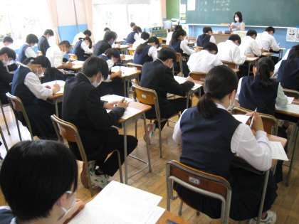 3年生 中間評価1日目 公開日 2021/05/25 更新日 2021/05/25 3学年 5月25日(火)1限 国語 いよいよ中間評価です。これまでの学習の成果を存分に発揮してほしいです。 上:3−1 中:3−2 下:3−3