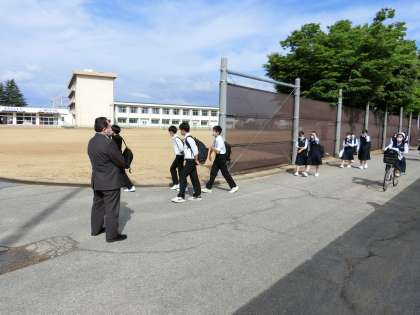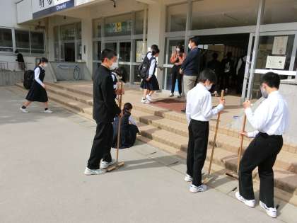 朝の登校風景1 公開日 2021/05/26 更新日 2021/05/26 生徒会 5月26日(水)7:55 五月晴れの気持ちよい朝になりました。生徒玄関では、美化委員会が朝清掃を行っているおかげで、みんなより気持ちよく登校しています。