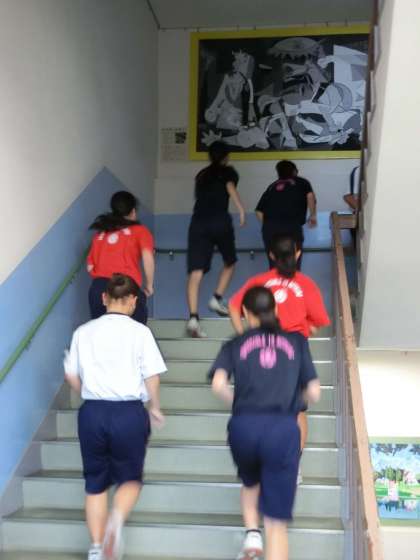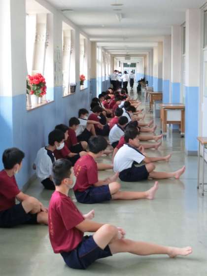 放課後の活動5 公開日 2021/06/04 更新日 2021/06/04 部活動 せっかく放課後の時間が長いのに、外はあいにくの雨。そのため校舎内の廊下では、大会間近になった運動部が体力トレーニングに汗を流していました。